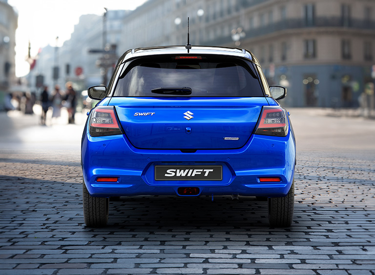Novi Swift se ističe profinjenim dizajnom — od elegantnih, čistih linija dvobojne karoserije do širokog stražnjeg branika. Njegov sportsko-atletski izgled savršeno odražava agilnost i precizno, brzo upravljanje.